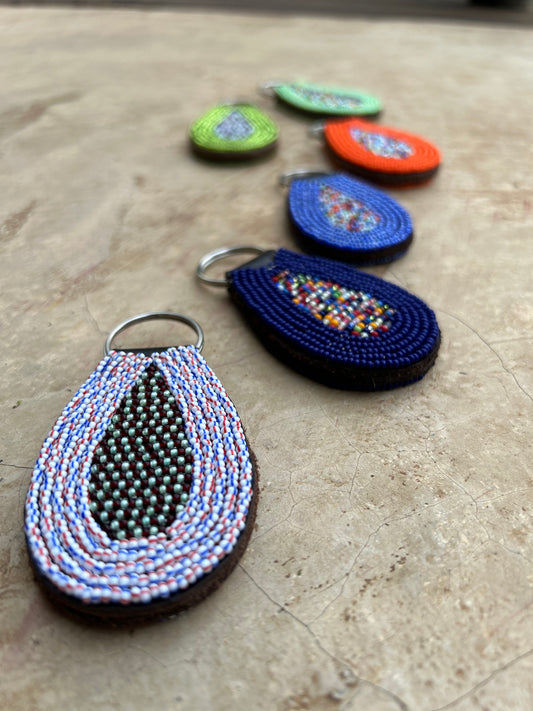 Each item we produce is of a high quality and unique design, due to the handmade nature of the product. We try not to use any extra metal clasps, hooks, buckles or rivets and we make our own thread for our beading from reused plastic food bags.